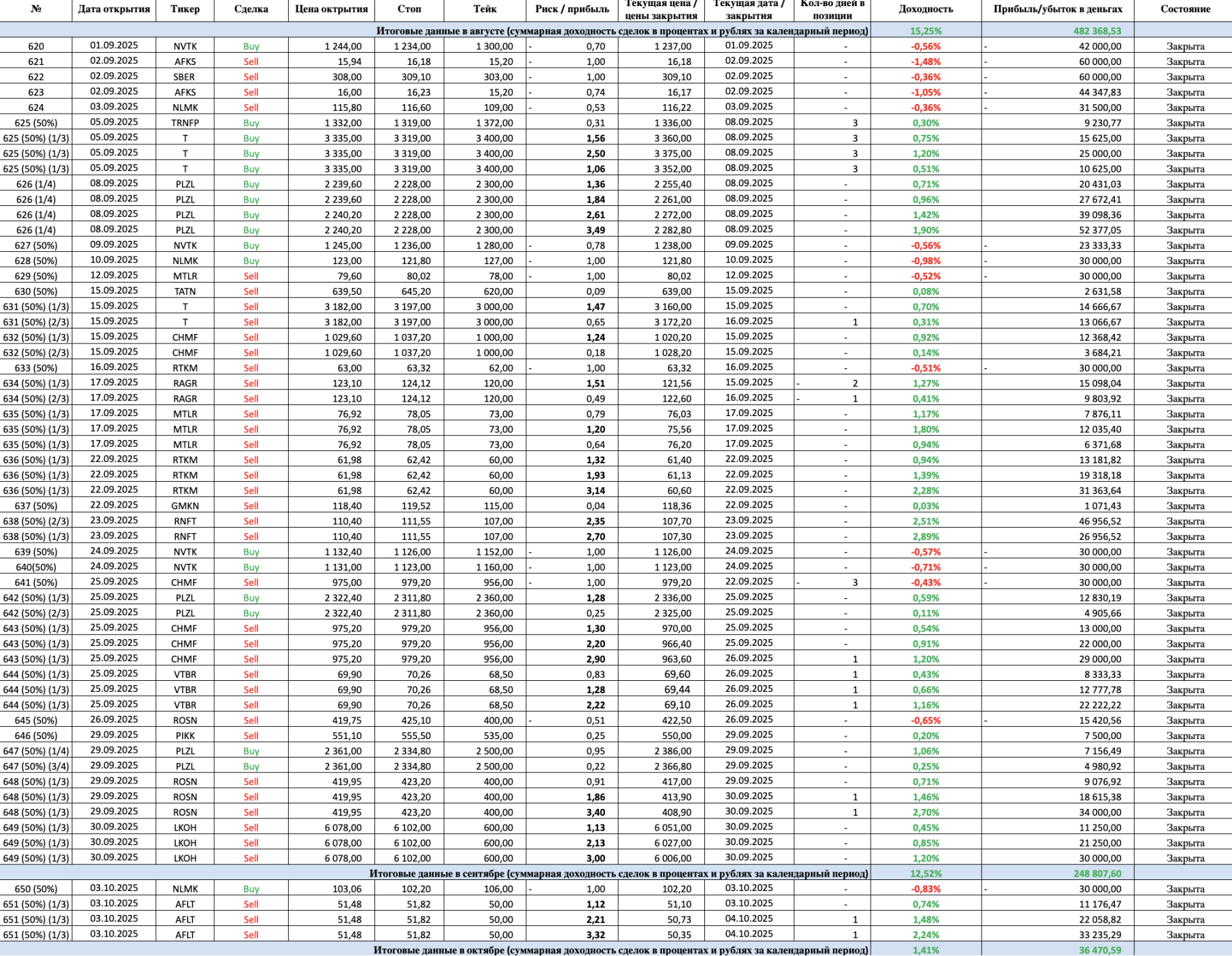 - Читайте итоги августа 2025 г.: +7,4% за месяц, 24 сделки, 12 прибыльных
