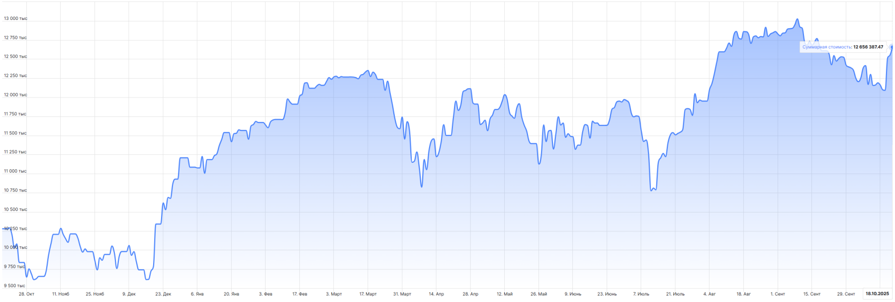 Обгонял без пополнений, шортов и кредитных плечей индекс МосБиржи на 20%. Ещё 13 октября фиксировал промежуточные результаты с начала года, где доходность портфеля была +9,1% против падения индекса на -9,9%.