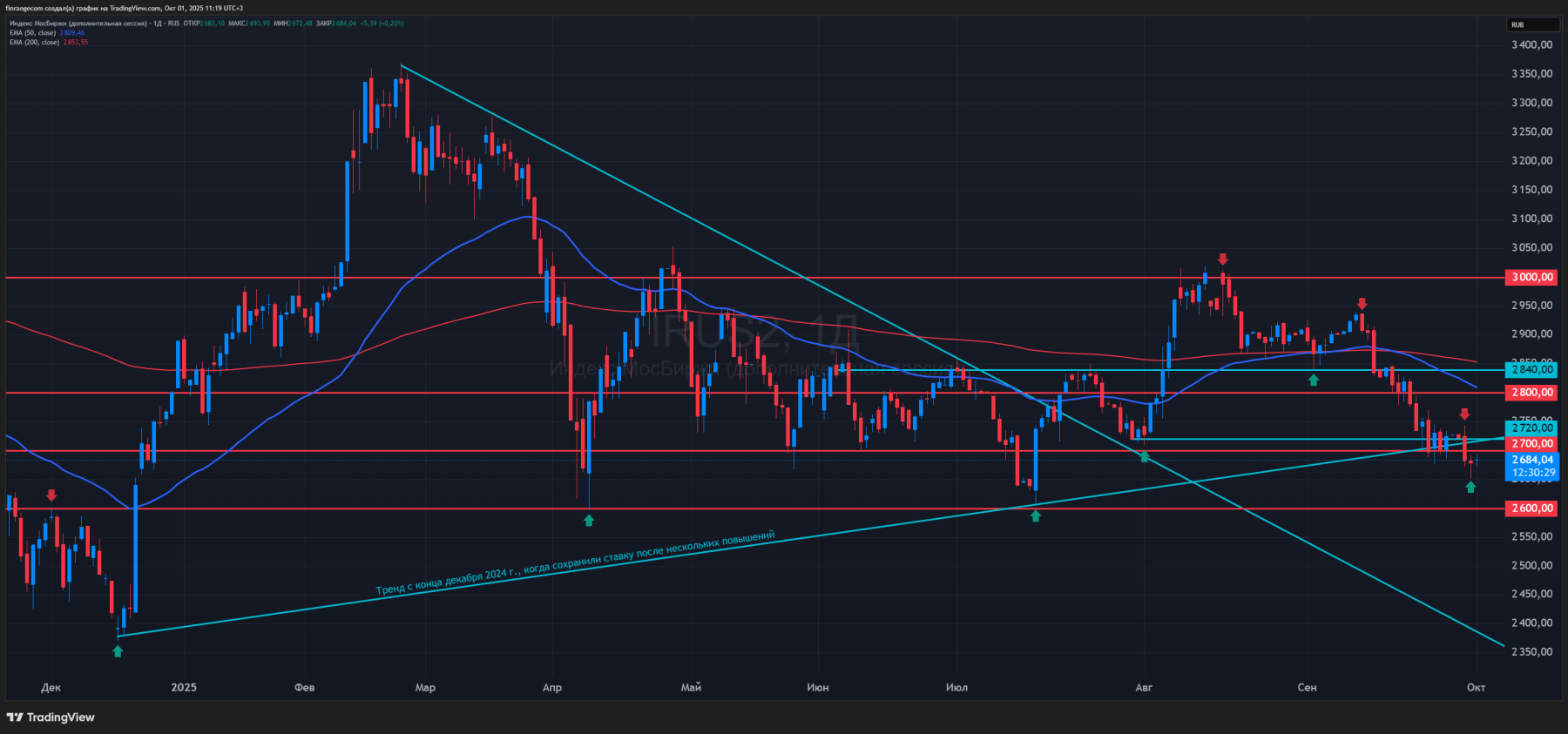 Возможно, мы протестируем по индексу МосБиржи 2700 пунктов и пойдем обратно в сторону 2600 пунктов. Не исключаю, что рынок могут загнать выше под недельные данные по инфляции, а в ожидании завтрашнего выступления президента в международном дискуссионном клубе «Валдай».