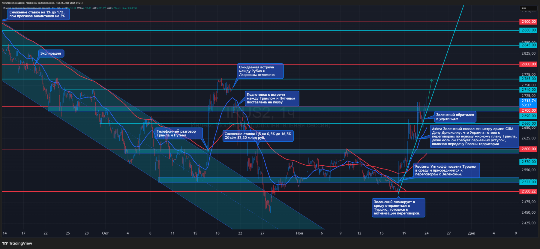 NYT пишет, что сейчас разрабатываются планы прямых переговоров между США и Россией. Думаю, пока эти процессы не сорвались, логично оставаться в лонгах как минимум до встречи США и РФ. Потом уже смотреть по факту: если будет прогресс и переход к переговорам РФ и Украины – держать/откупать лонги.