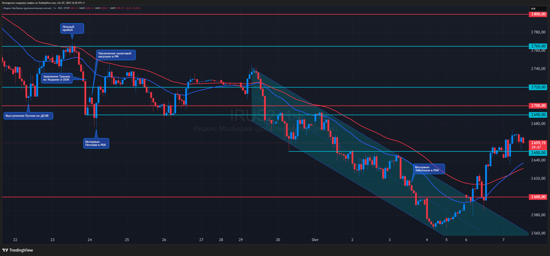 В связи с этим, я придерживаюсь прежнего плана: “Пока мы не пробьем и закрепимся выше 2650 пунктов – тренд нисходящий”. Если мы скорректируемся и вернёмся снова к 2600 пунктам, где увидим очередную реакцию на повышенном объёме, значит там реальный спрос, а не просто “закрытие шортов”.