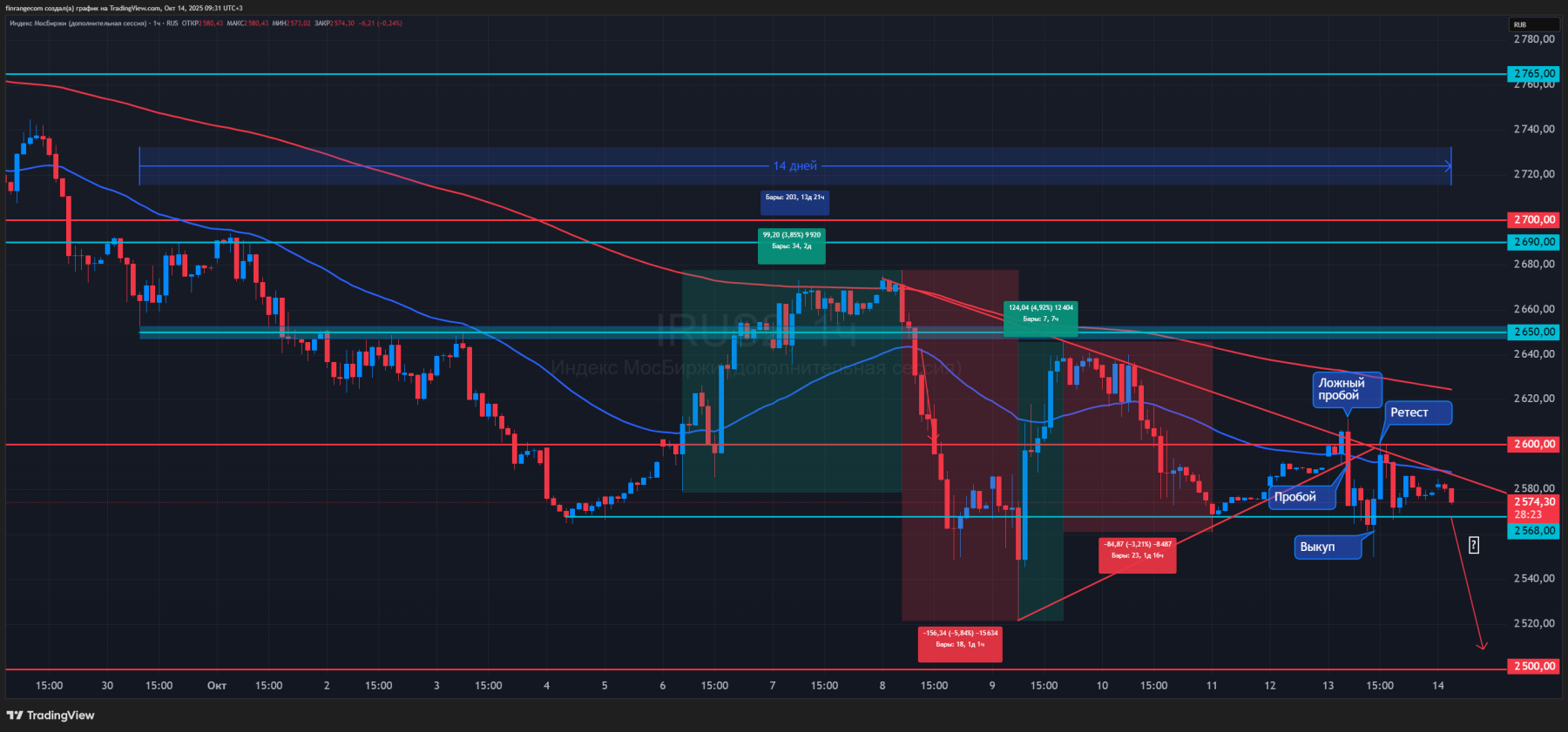 Тем не менее, индекс МосБиржи не смог закрепиться выше 2600 пунктов и ушёл обратно к уровню поддержки 2568 пунктов. Так как не было сильного катализатора для разворота рынка.