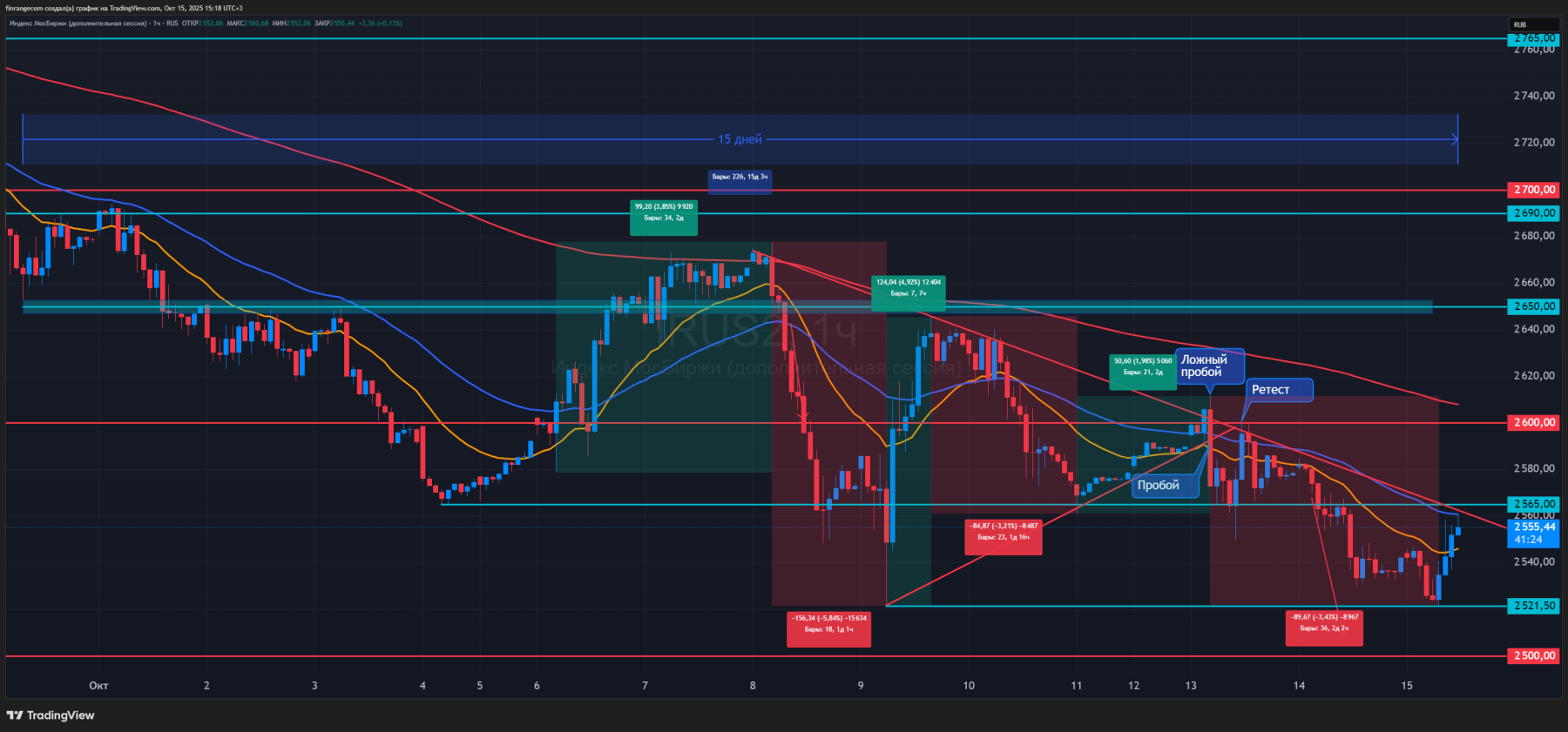 Ускорение вчера во второй половине дня произошло, когда посол США при НАТО сообщил, что в среду ожидается «громкое» объявление относительно поставок оружия Украине. На фоне этого важным событием для российского рынка может стать встреча Трампа с Зеленским в пятницу 17 октября, на которой будет обсуждаться вопрос поставок Томагавков. Нужно ждать официальных заявлений по итогам встречи.
